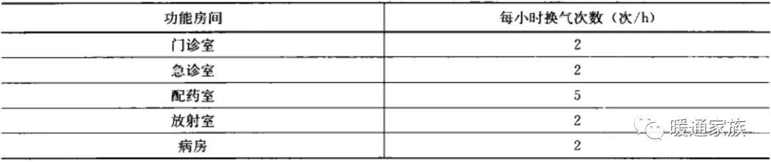 2)医院建筑设计每小时换气次数宜符合下表的规定。