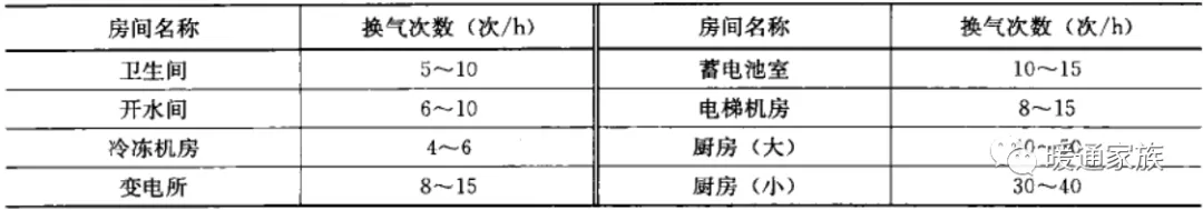 吸烟多的公共用房,宜设置排风设施,排风量不大于新风量的80%;卫生间、开水间及设备机房每小时换气次数应符合下表的规定。