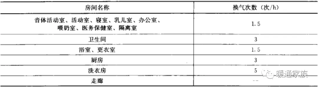 当采用换气次数确定室内通风量时,各主要房间的最小换气次数应符合下表的规定。