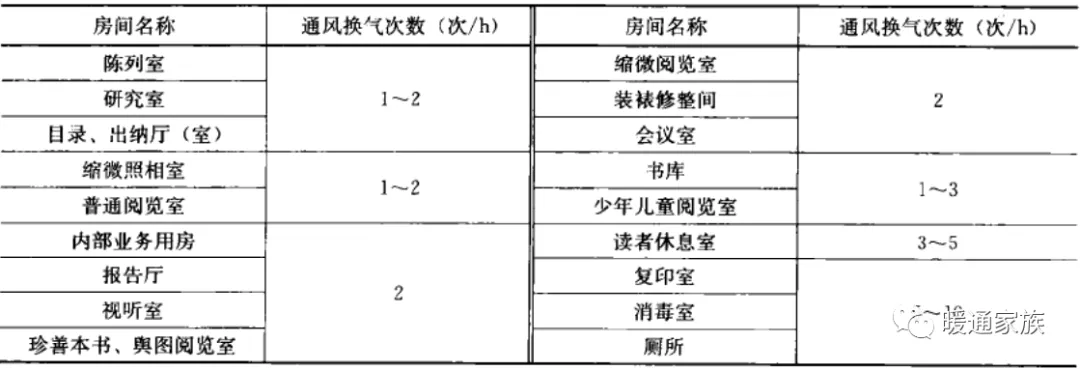 图书馆各种用房通风、换气次数应符合下表的规定。
