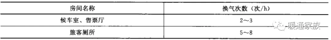 候车室、售票厅、旅客厕所等房间宜采取自然通风。当设置机械通风时,主要房间的换气次数应符合下表的规定。