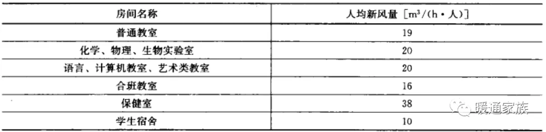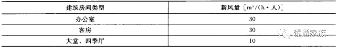 公共建筑主要房间每人所需最小新风量应符合下表的规定。