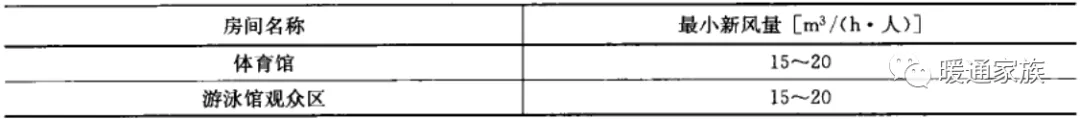 体育建筑空调系统的新风量应符合下表的规定。