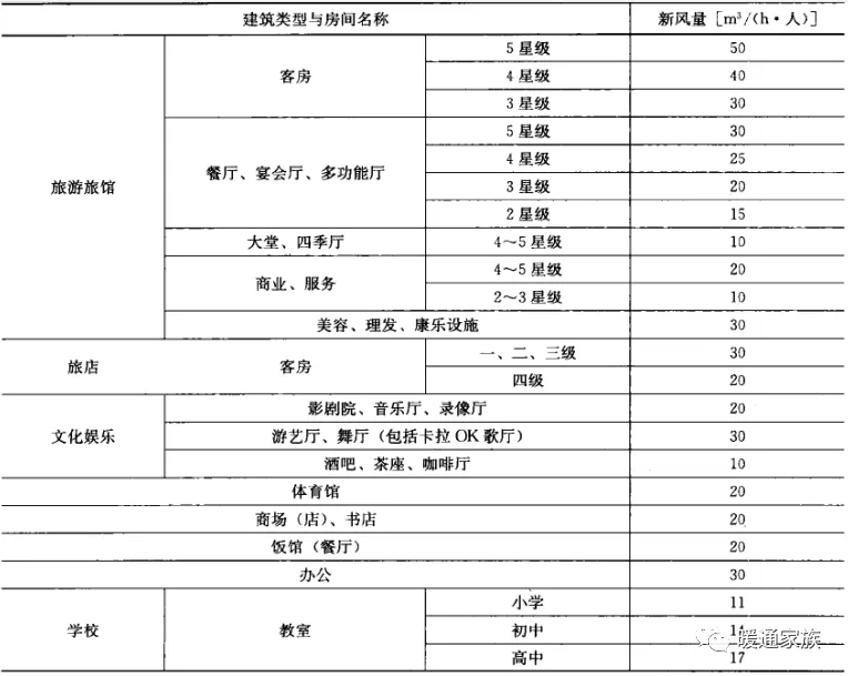 人员所需新风量按以下规范的规定确定。
