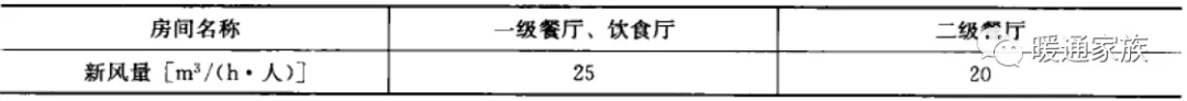 饮食建筑空调系统新风量应符合下表的规定。