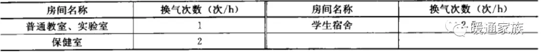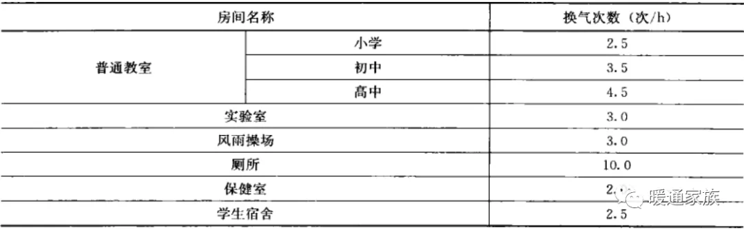 严寒及寒冷地区,特殊教育学校冬季室内换气次数不应低于下表的规定。