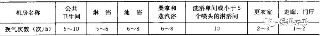 5)公共卫生间、浴室及附属房间机械通风换气次数按下表选用。