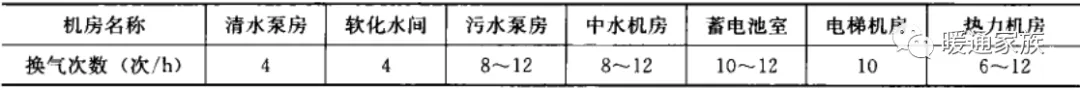 4)部分设备机房机械通风换气次数按下表选用。
