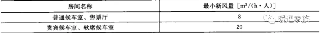 站房内主要房间空气调节系统的新风量应符合下表的规定。