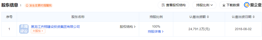 由黑龙江齐翔建设投资集团有限公司100%持股。