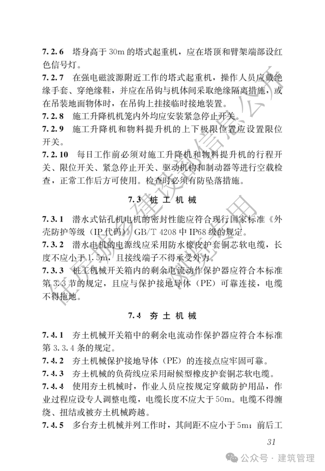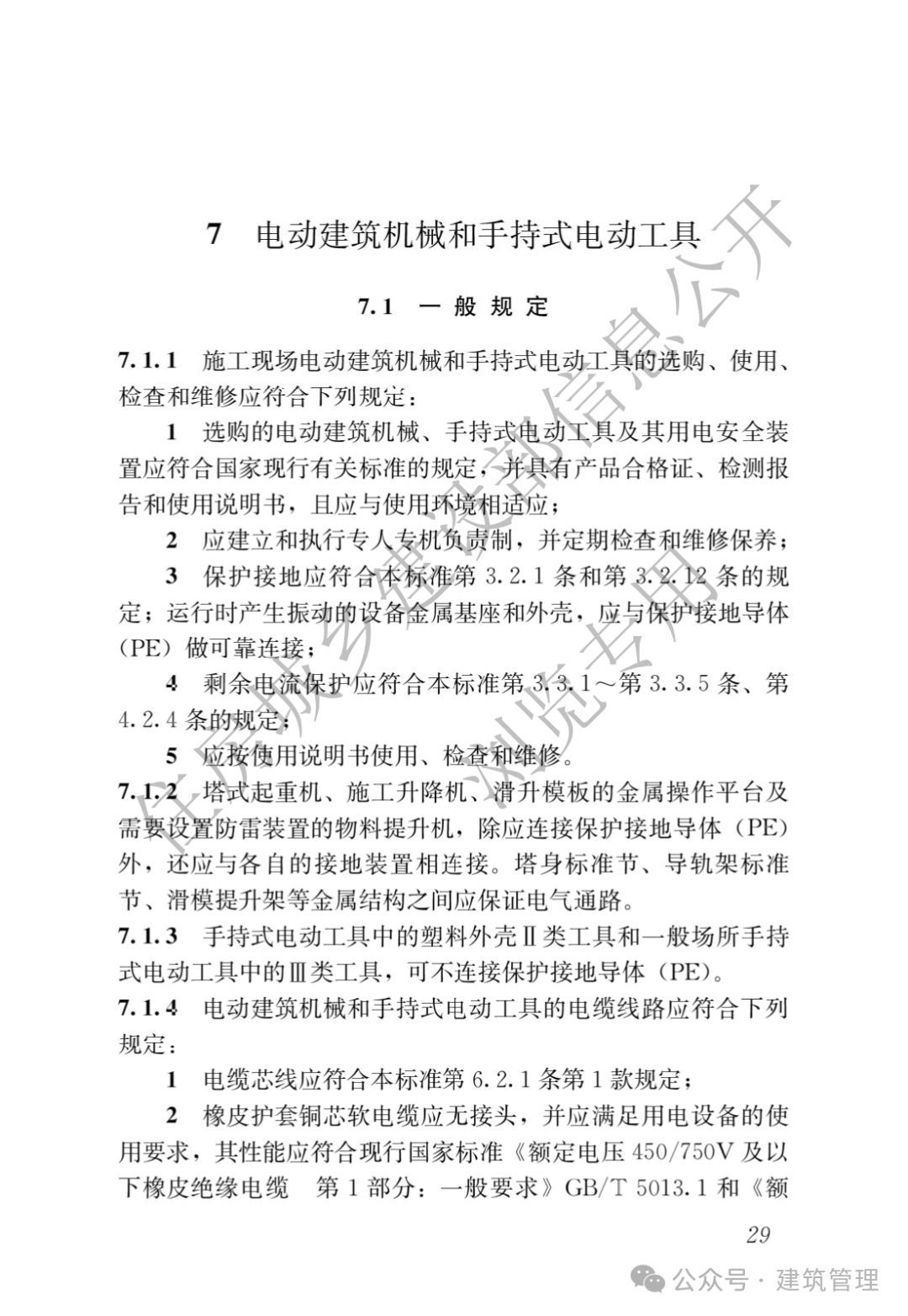 在第7章”电动建筑机械和手持式电动工具”中,新标准特别增加了塔式起重机供电电缆敷设方式及其固定内容。这一变化将为塔吊等大型机械设备的用电安全提供更明确的指导。
