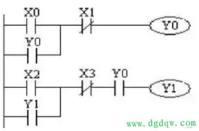 4.顺序启动控制电路 顺序启动控制电路允许按照预定的顺序启动多个设备。在图例中,Y0的常开触点串联在Y1的控制回路中,这意味着Y1的接通必须以Y0的接通为前提。这种设计在需要按照特定顺序启动设备的场景中非常有用。