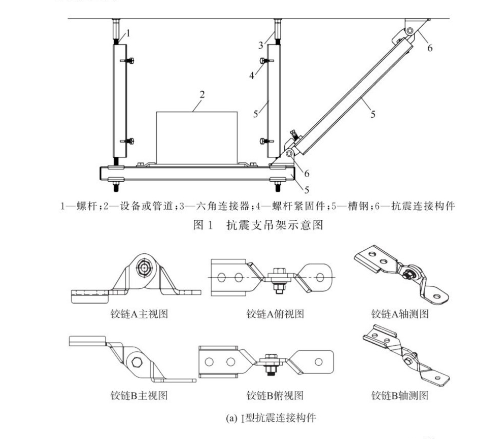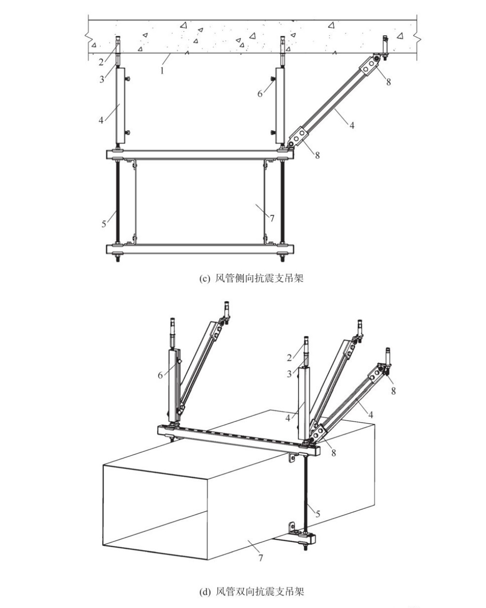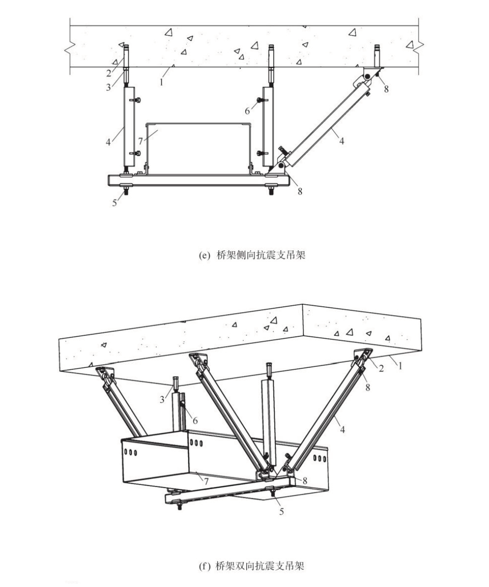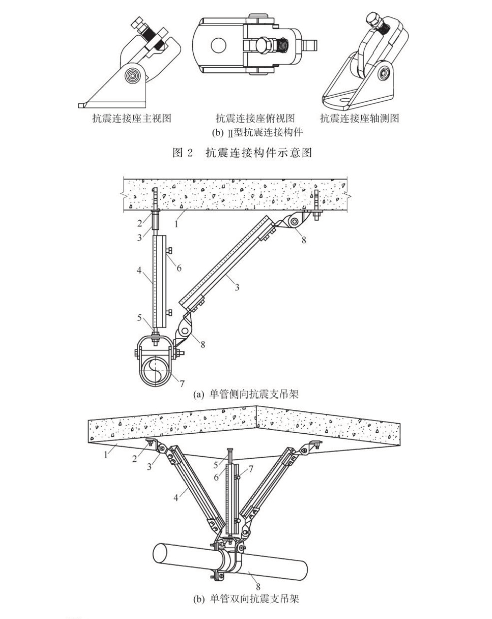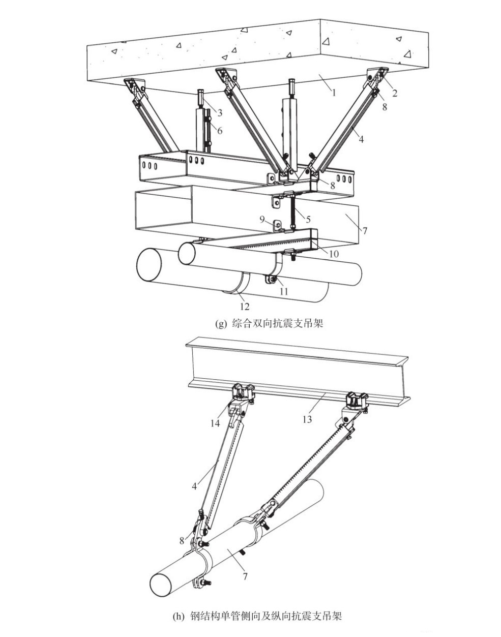 抗震支吊架是由锚固体、加固吊杆、抗震连接构件及斜撑组成,根据被保护管线的不同,抗震支吊架有多种构造形式:
