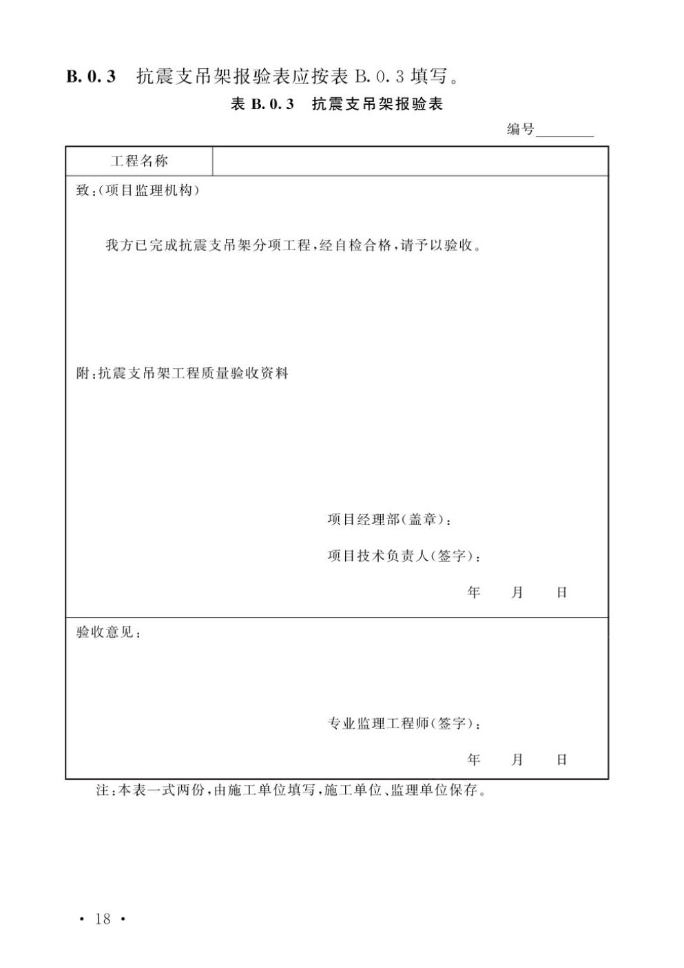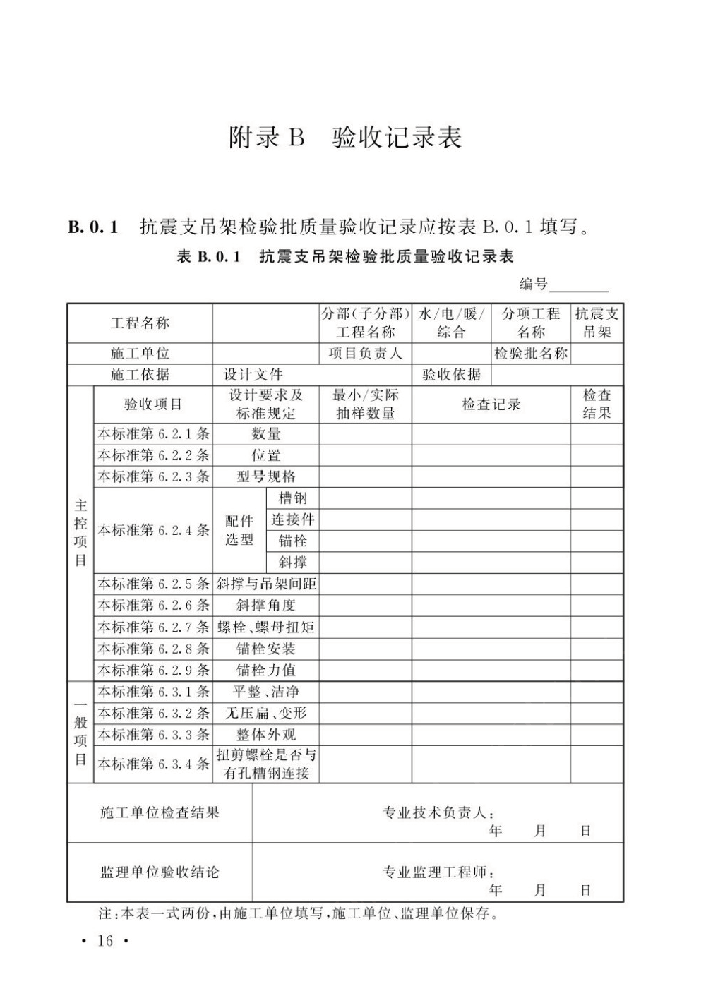 7、抗震支吊架施工质量验收记录应按本标准附录B的规定执行。