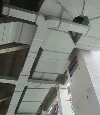 缺点:风管色差相对严重,观感质量一般。黄梅天后容易表面生霉;不能用于一类高层建筑的排烟;风管较厚,质量重,增加抗震支架数量。