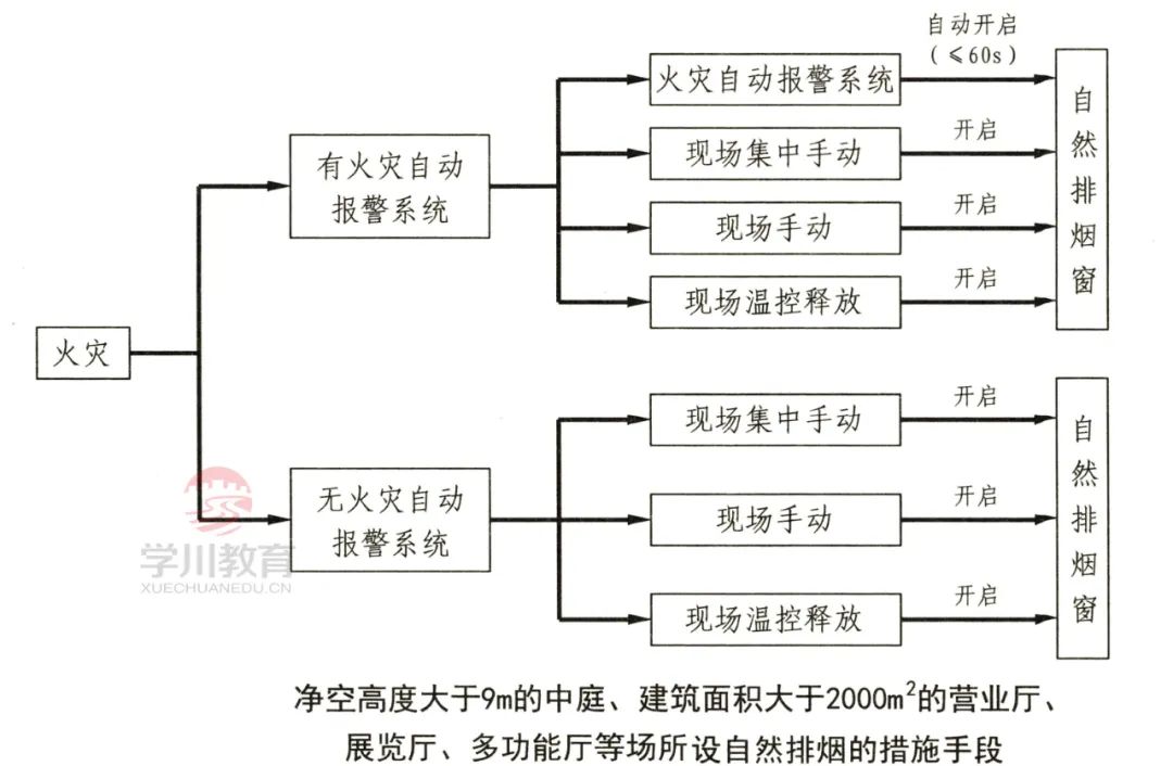 净空高度大于9m的中庭、建筑面积大于2000㎡的营业厅、展览厅、多功能厅等场所,尚应设置集中手动开启装置和自动开启设施。
