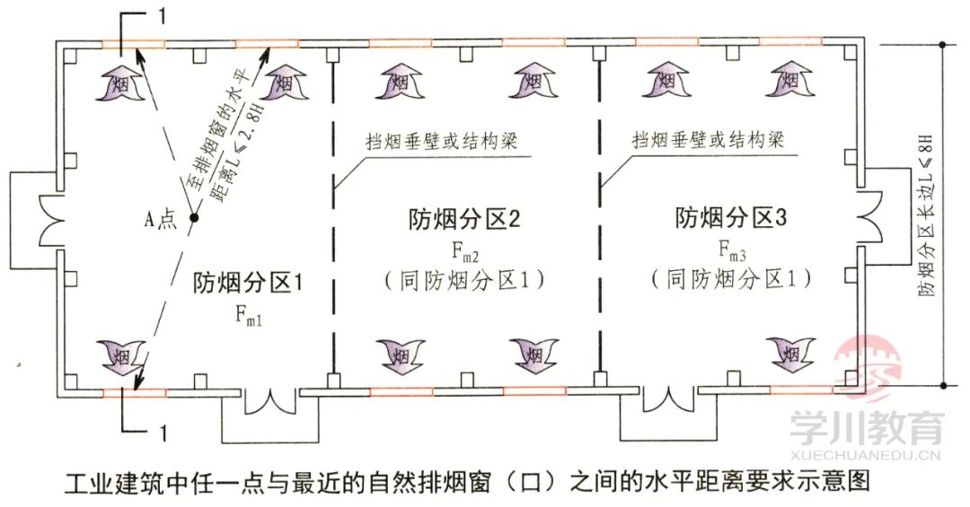 当工业建筑采用自然排烟方式时,其水平距离尚不应大于建筑内空间净高的2.8倍。