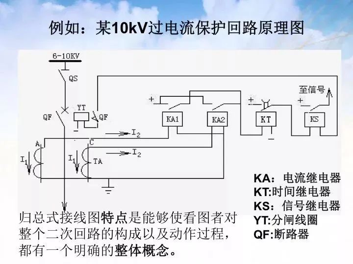 (1)归总式接线图:接线图中的全部仪表、继电器等设备以整体的形式来表示;