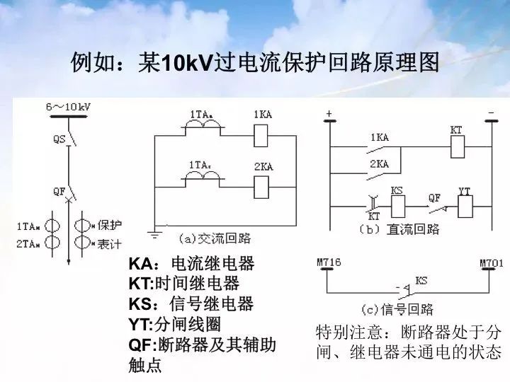 不论交流回路还是直流回路,二次设备动作都是由电源驱动的,所以看图时,应先找电源,再顺回路接线往后看,交流沿闭合回路,直流从正电源沿接线到负电源,并分析各设备的动作。