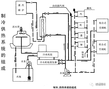 溴化锂空调系统供冷与供热用水联网时,其系统动力部分管网联接如图所示。