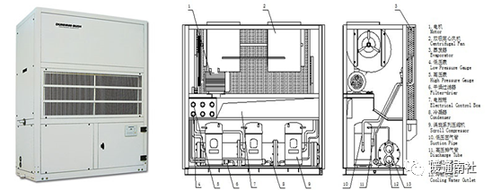 柜式空调机组,也叫整体式空调机组,是将空气过滤器、表冷器、加热器、加湿器等空气处理部件,整体装在一个立柜式箱体内而形成的机组。