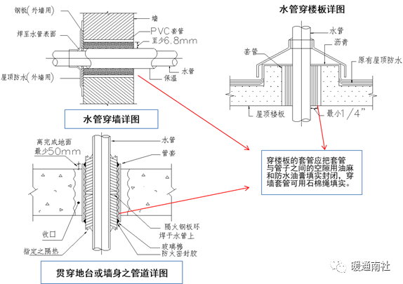 2)套管的长度:过墙套管的长度=墙厚+墙两面抹会厚度。