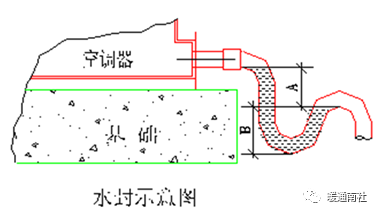冷凝水系统:室内空调末端设备(风机盘管、空气处理机组)在与室内空气进行热交换时,由于低于室内外空气的露点温度,空气中的水蒸气会在冷壁面遇冷析出而结露,最后经过冷凝水管道排出。