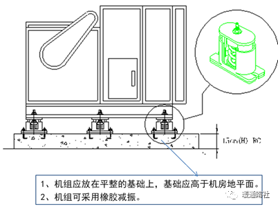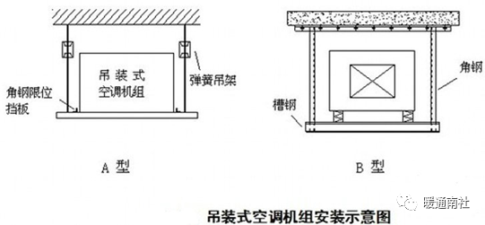 3、机组底部应设置隔振垫或采用弹簧减振吊架。