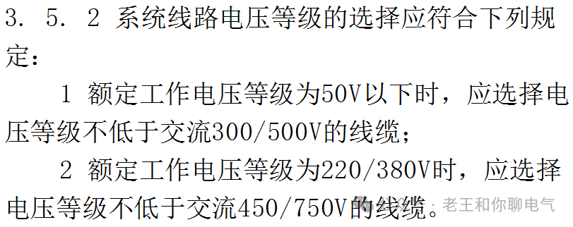 同一本规范,在不同章节,对线缆的电压等级却不一致!
