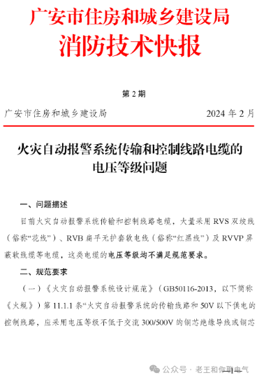 所以就有了广安是住建局发出的消防技术快报,要求不使用RVS、RVB、RVVP线缆,改为使用电压等级为300/500V的RV、RVV线缆。
