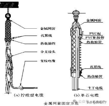 将金属网套固定在电缆顶端,如图金属网套固定方法。