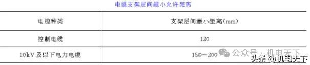 b 设计无要求时,电缆支架层间最小允许距离符合下表的规定。