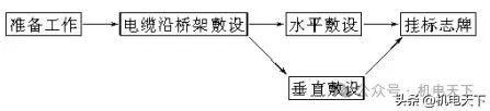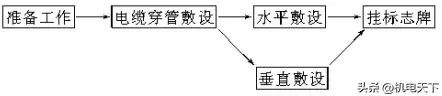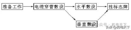 准备工作→直埋电缆敷设→铺砂盖砖→回填土→埋标桩→管口防水处理→挂标志牌