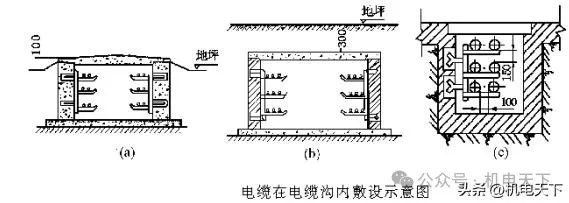 a 当设计无要求时,电缆支架最上层至竖井顶部或楼板的距离不小于150mm~200mm;电缆支架最下层至沟底或地面的距离不小于50mm~100mm。