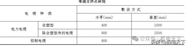 电缆排列整齐,少交叉;当设计无要求时电缆支持点间距不大于下表的规定。