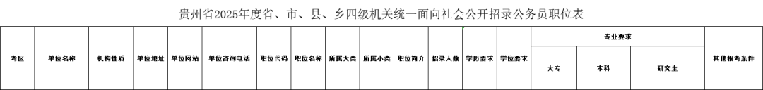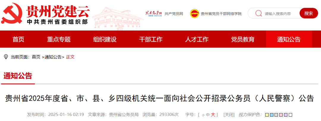 👉 贵州省《2025年度省、市、县、乡四级机关统一面向社会公开招录公务员(人民警察)公告》