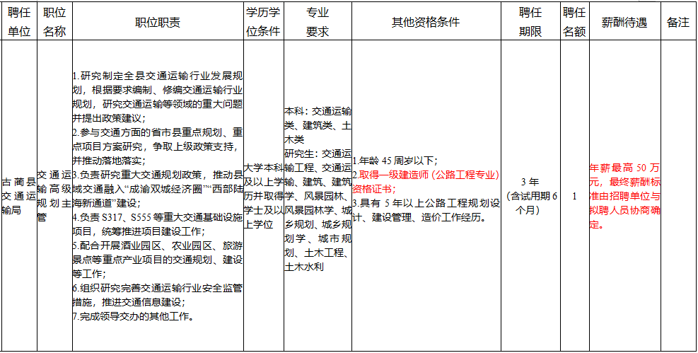 聘任单位:古蔺县交通运输局