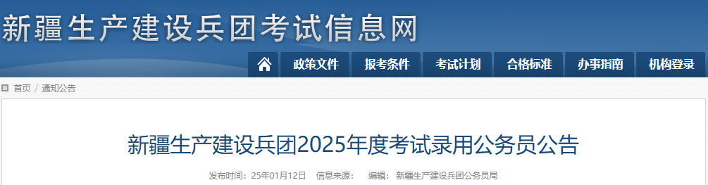 👉新疆生产建设兵团《2025年度考试录用公务员公告》