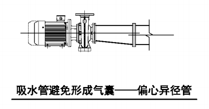 7 吸水管水平管段上不应有气囊和漏气现象。变径连接时,应采用偏心异径管件并应采用管顶平接