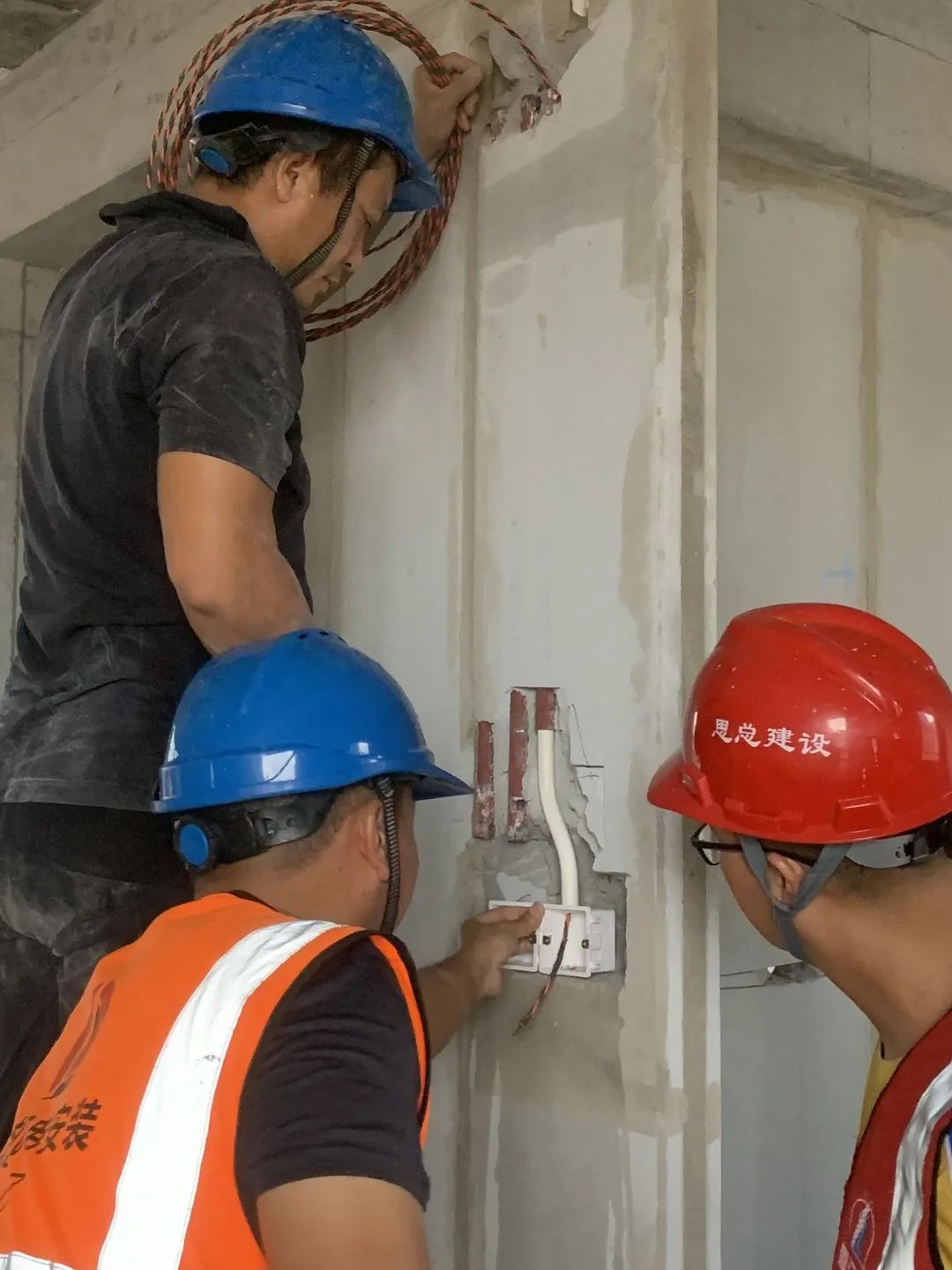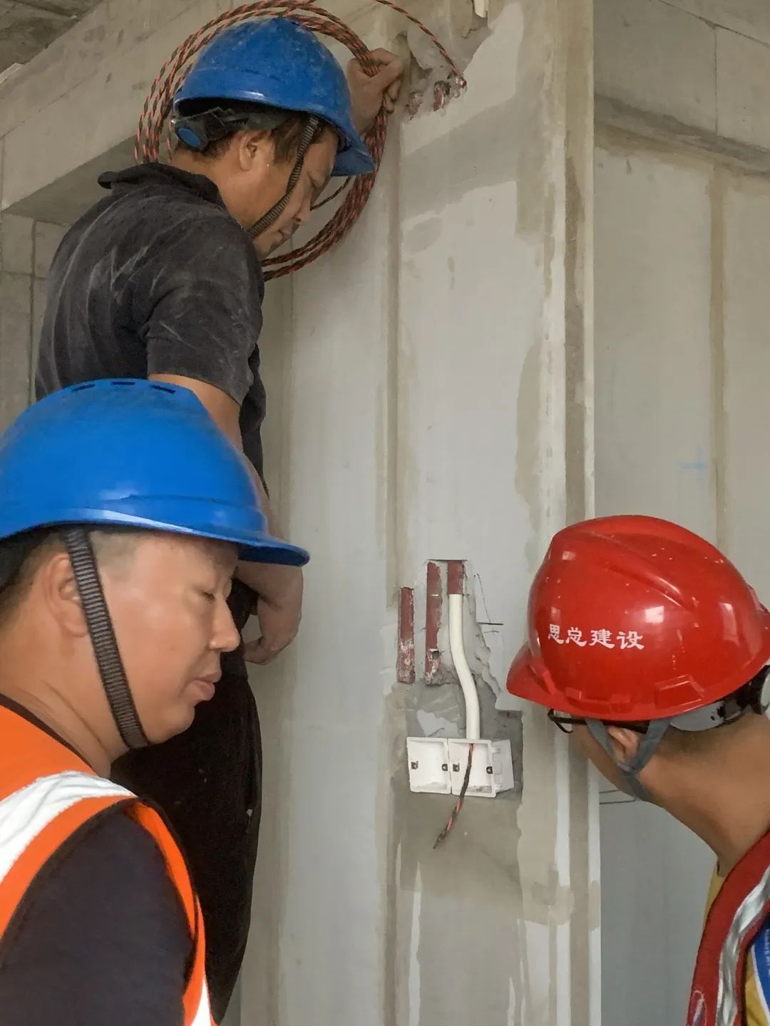 近期,围绕ALC墙板机电线管免开槽(机电线管一体化)施工工艺,厦门思总建设有限公司总工办组织技术攻关,在前期充分的市场调研,以及对预制厂家的多番考察下,经深入研究、科学选材、定制生产,并在国贸P17项目完成了实物样板施工试验。
