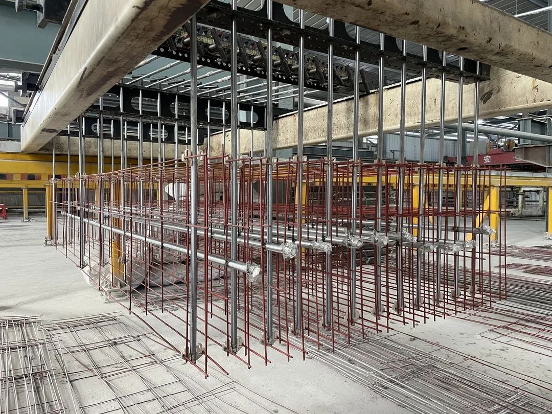通过深化设计提前确定预埋的线管位置,将机电工程的线管,通过电焊固定在ALC板材内的钢筋网片上,线管选用耐高温的钢管,通过一体化浇筑成型,直接为线管提供接驳空间。