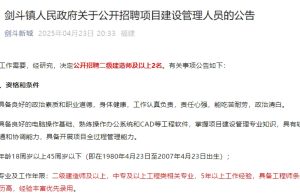 近日,剑斗镇人民政府发布了一则关于公开招聘项目建设管理人员的公告。 要求二级建造师及以上,中专及以上工程类相关…