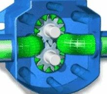 齿轮泵 工作原理:齿轮泵的两齿轮的齿相互分开,形成低压,液体吸入,并沿壳壁送到另一侧。另一侧两齿轮互相合拢,形…