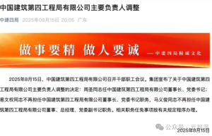 8月15日,中建四局公众号发布人事调整消息:易文权(原四局董事长)不再担任公司董事长、党委书记,由周圣接任;马…