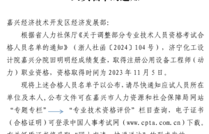 近日,嘉兴市人力资源和社会保障局发布《关于补充公布我市2024年注册公用设备工程师(动力)职业资格考试合格人员…